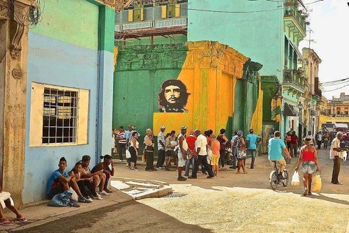 Havana is famous for Communist charm, icons of Che Guevara, old cars, courgette-sized cigars. All of these appear in my photographs - unavoidable cliches, and yet part of the city’s fabric. As are peeling walls that swirl from tomato red to pink; schoolgirls in ochre skirts and crisp white shirts; aquamarine lintels against turquoise doors, and sienna torsos lit from within a doorway’s shade. Havana gluts the eye.